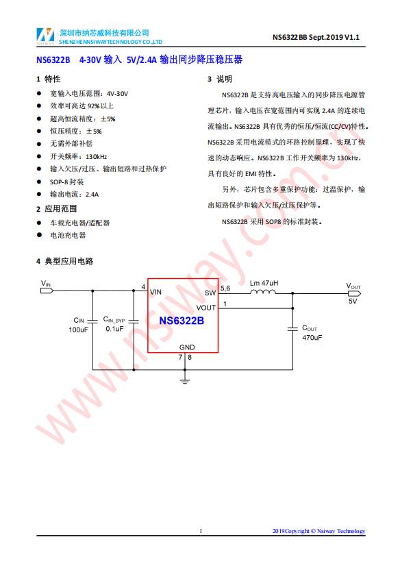 NS4890C 2.4W 单声道 AB 类音频功率放大器