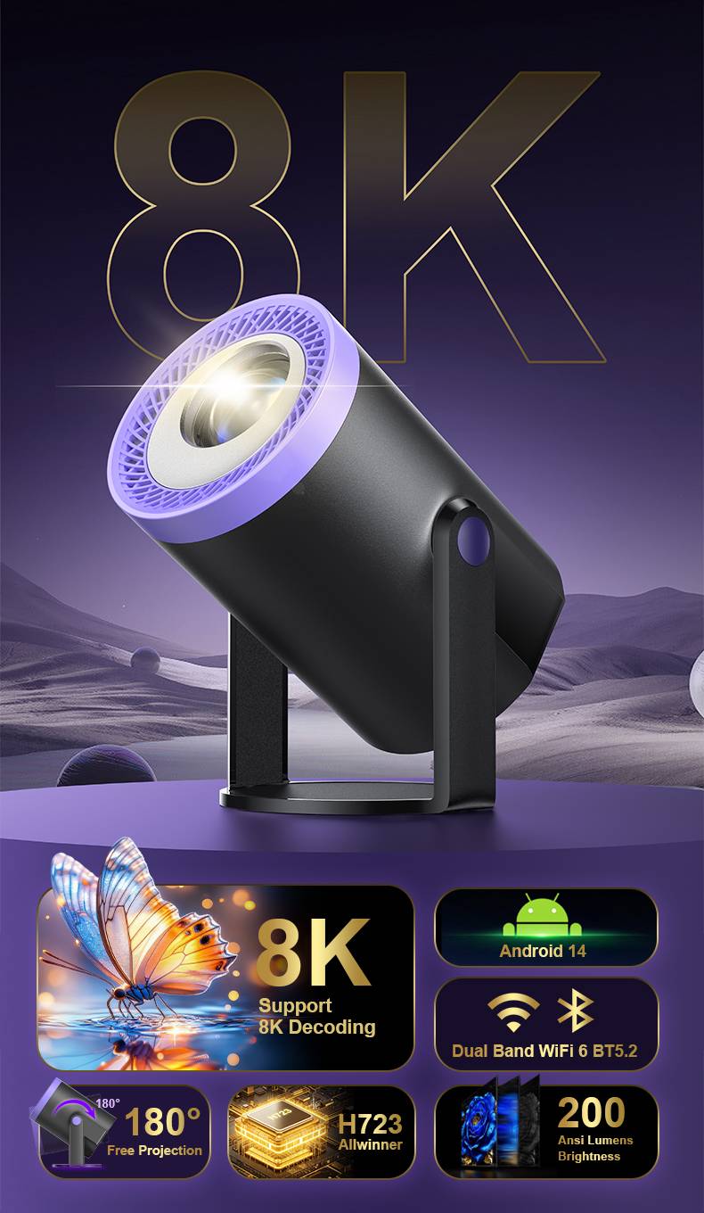 TURN 1 Projector Home 4K Portable Ultra HD Living Room Wall Projection Wireless Same Screen Android