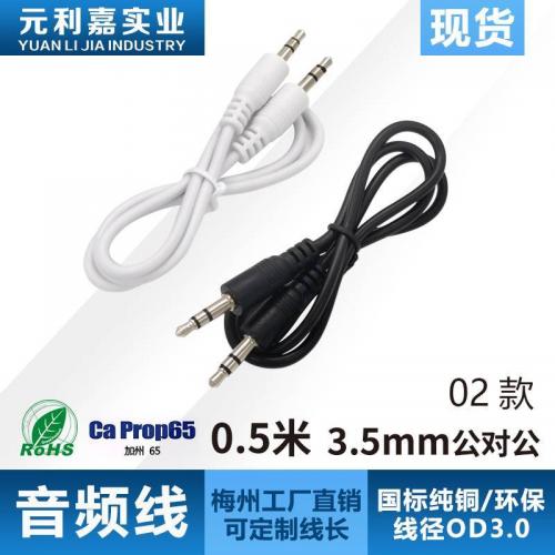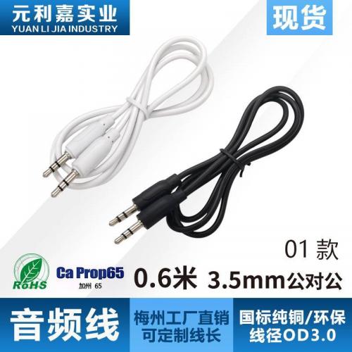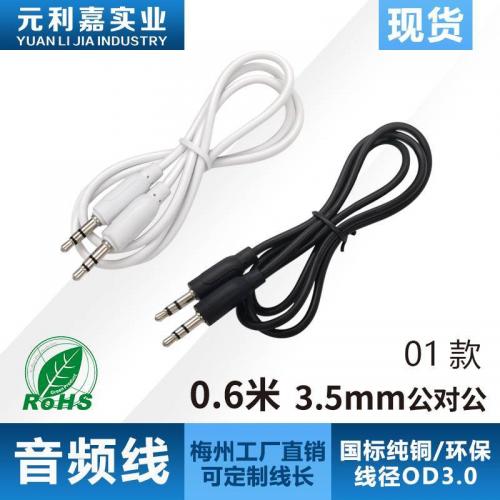 0.6-meter audio cable, pure copper 3.5mm, public to public speaker, mobile phone, Bluetooth car connection cable, in sto