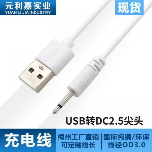 0.8-meter USB to DC 2.5mm pointed audio monaural charging cable, beauty device, facial cleanser, sex toy
