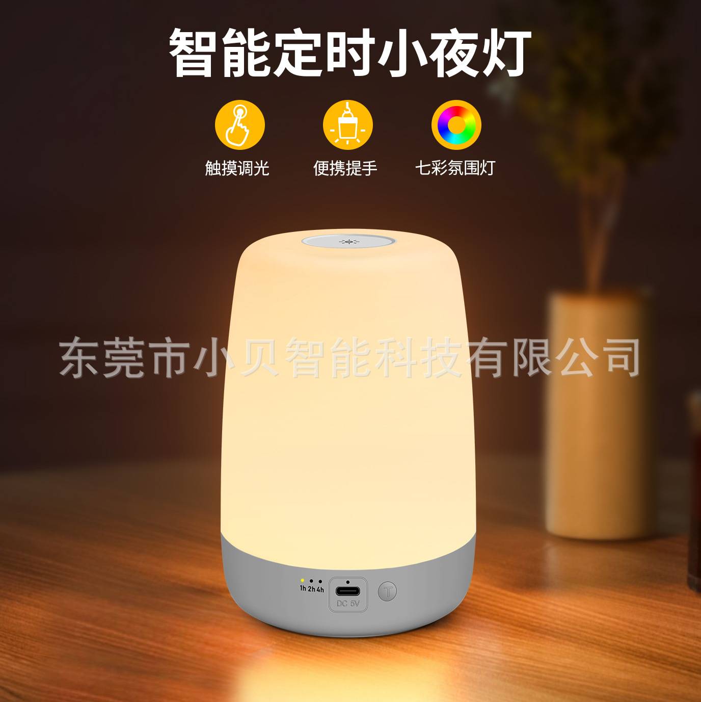 跨境新款USB创意喂奶礼品手提小夜灯定时台灯卧室床头灯7彩氛围灯