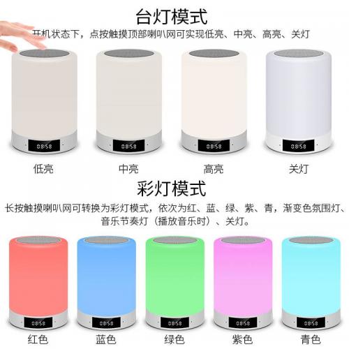 重低音多功能氛围灯无线蓝牙音箱灯触摸变色小夜灯床头灯桌面闹钟