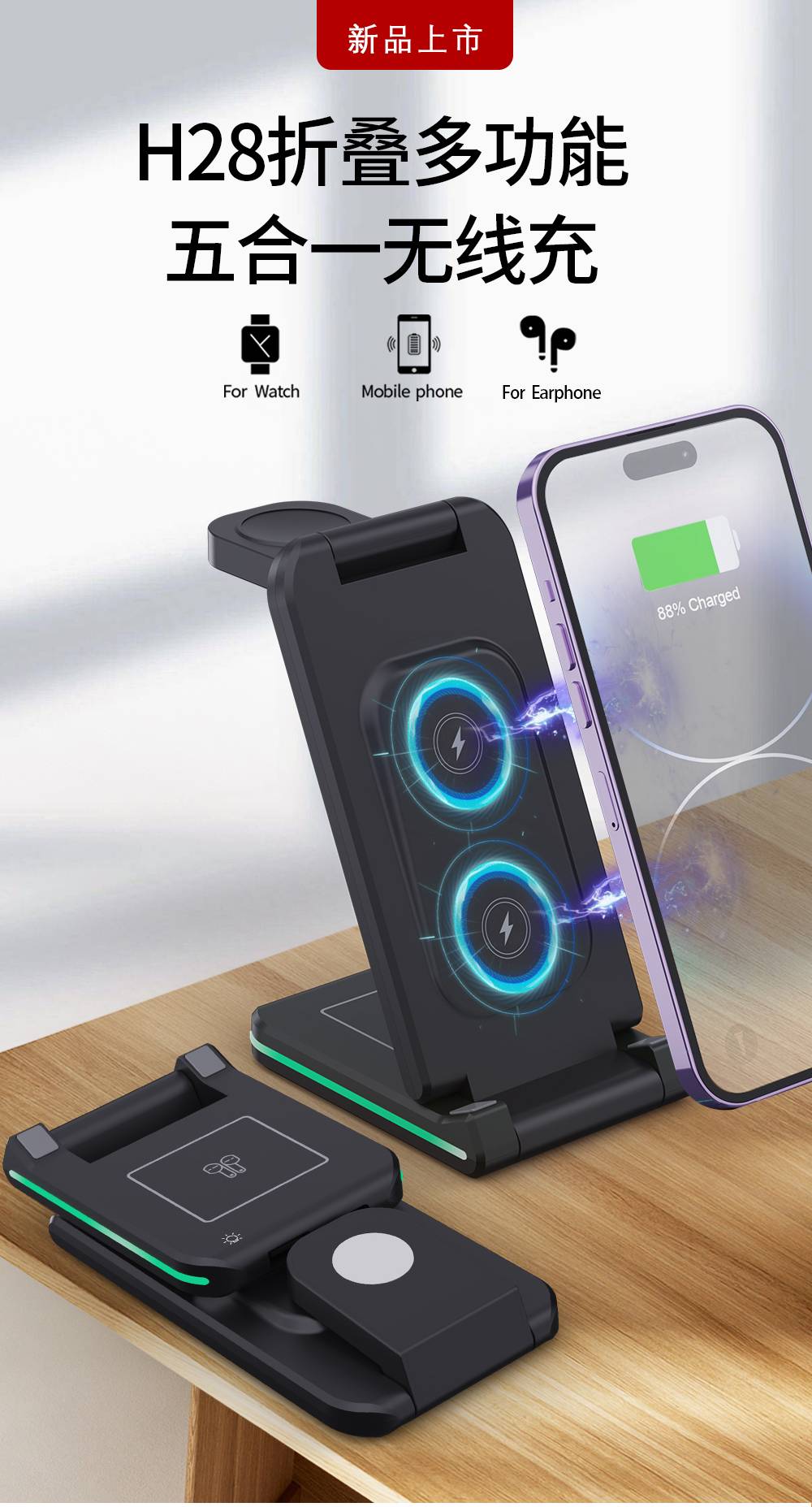 H28折叠多功能五合一无线充