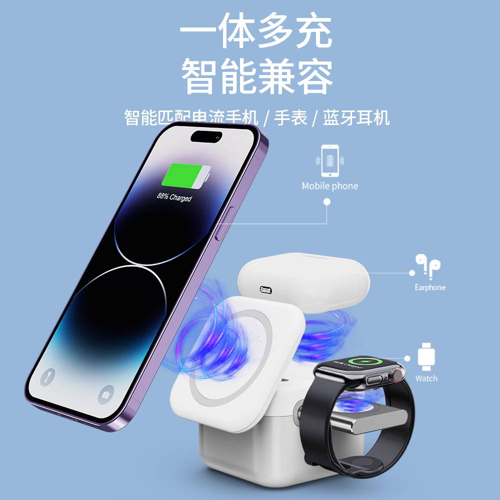 H48磁吸三合一无线充电器
