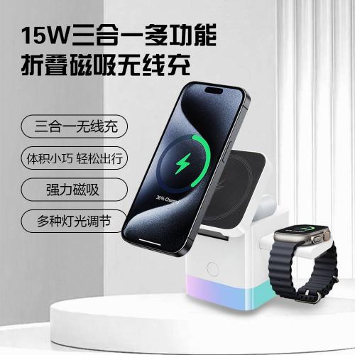 三合一折叠磁吸无线充