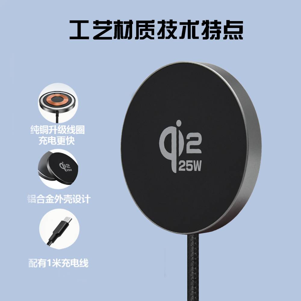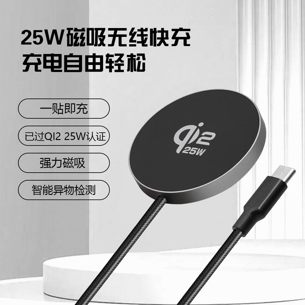 新品QI2.2 25W 无线充 磁吸带线25W快充