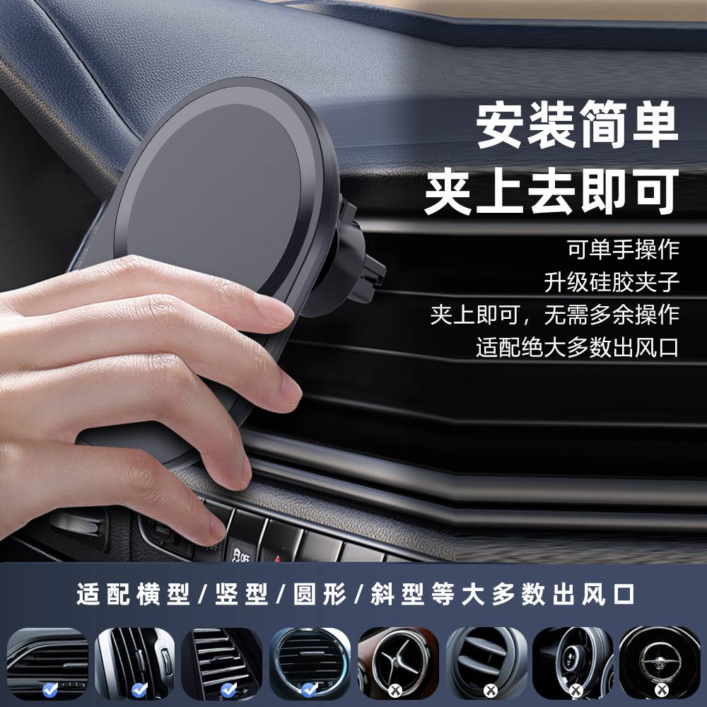 厂家直供手机车载磁吸支架通用智能15W无线快充适用苹果安卓