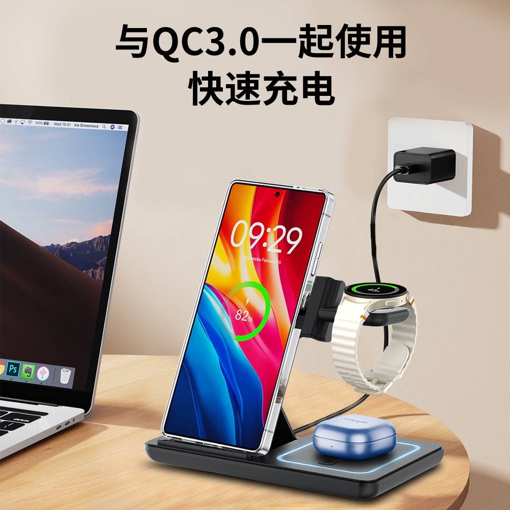 源头工厂平板三合一无线充电器适用手机手表耳机15W桌面充电座
