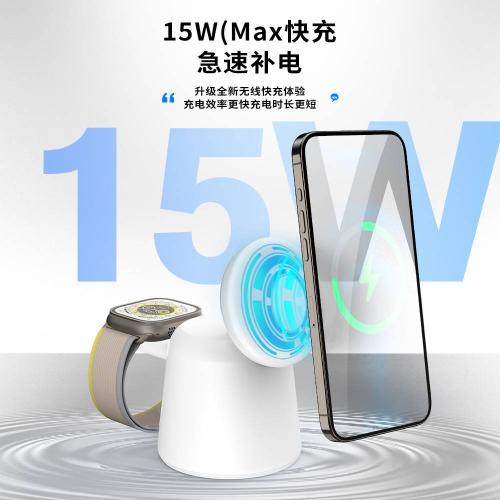新款三合一磁吸无线充电器适用苹果手机Magsafe 15W快充无线充