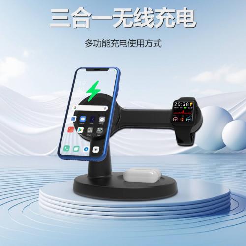 跨境新品立式三合一无线充 360度旋转苹果手机手表耳机全适用
