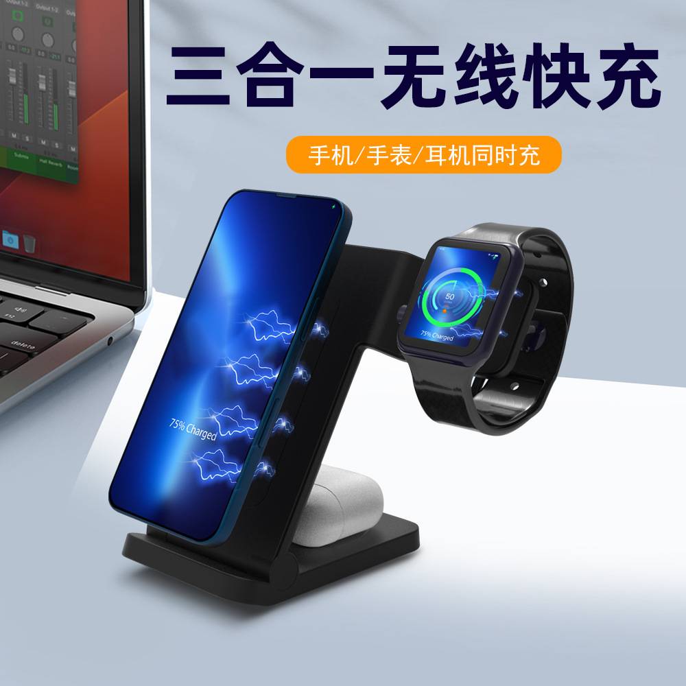 源头工厂三合一桌面无线15W快充 可手机手边耳机同时充电 贸热销