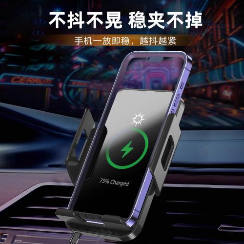 新款车载15W无线快充 黑色镜面 自动收缩卡扣 防抖防震 外贸热卖