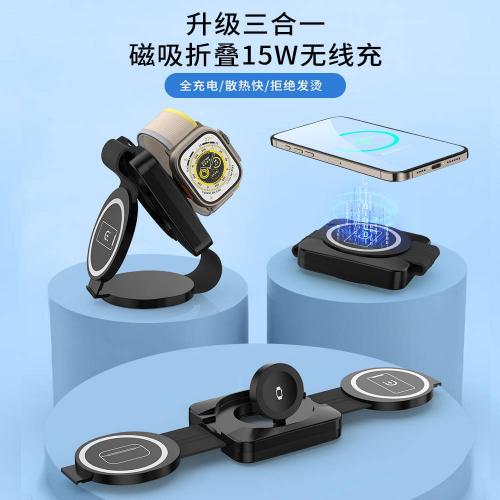 源头工厂无线充电器手机三合一充电座折叠磁吸快充15瓦