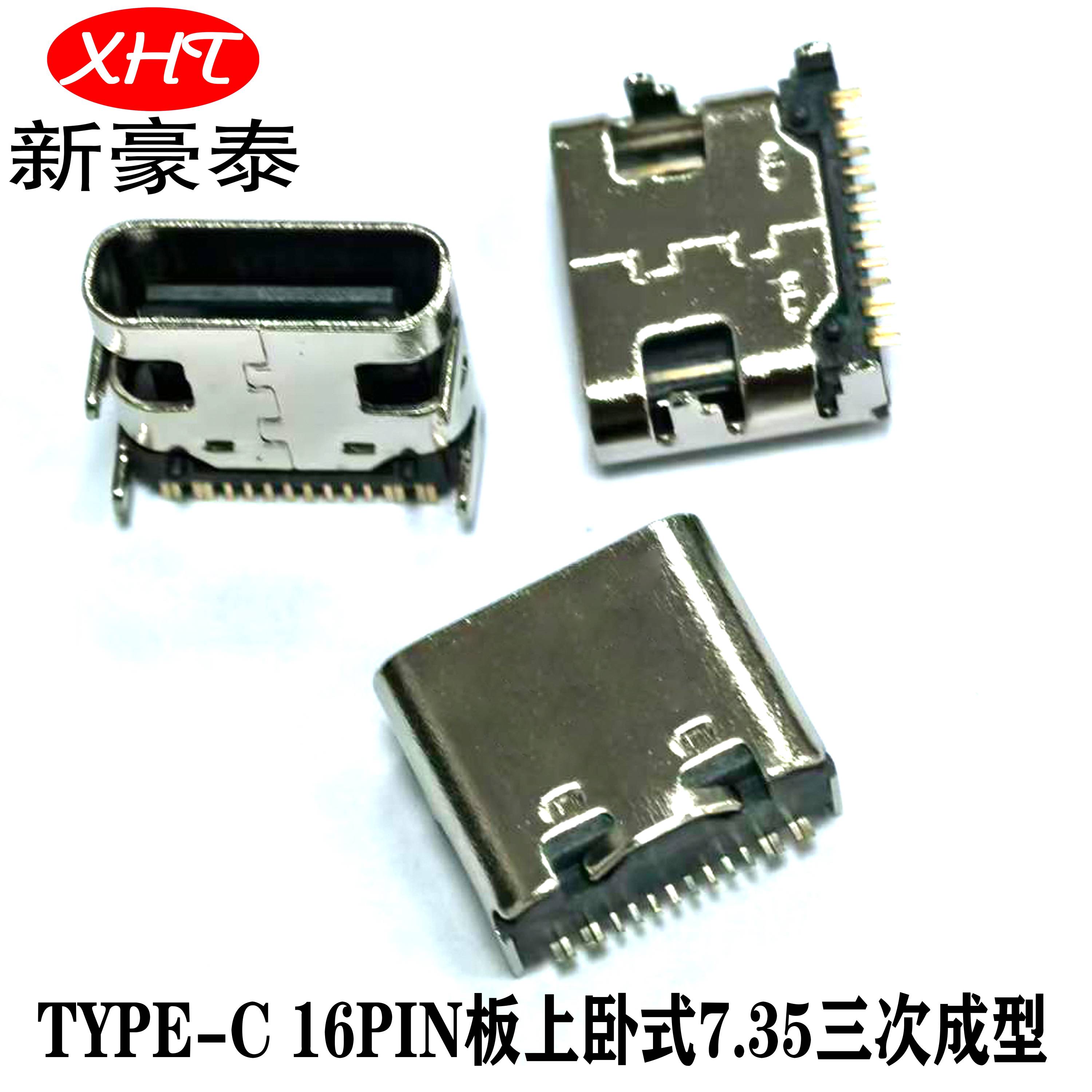 TYPE—C16PIN板上卧式7.35三次成型0.3外壳,端子镀金0.5U,寿命测试插拔10000+