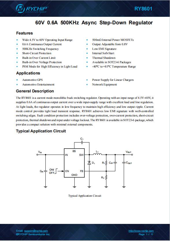 RY8310 30V 1A 1.4MHz Synchronous Step-Down Regulator