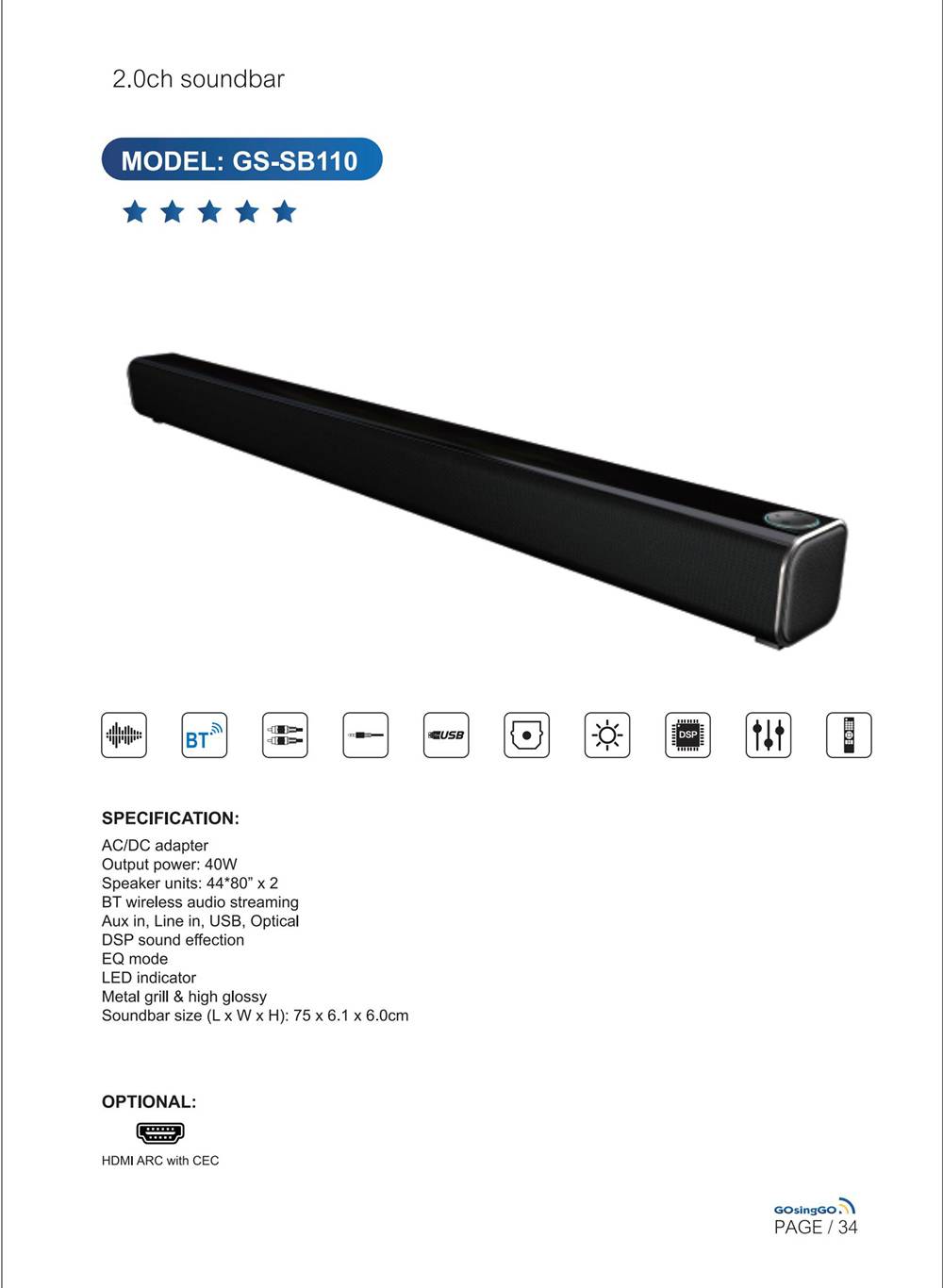 2.0 条形音箱 GS-SB110