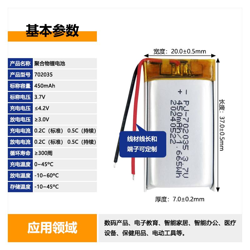 聚合物锂电池 型号:702035