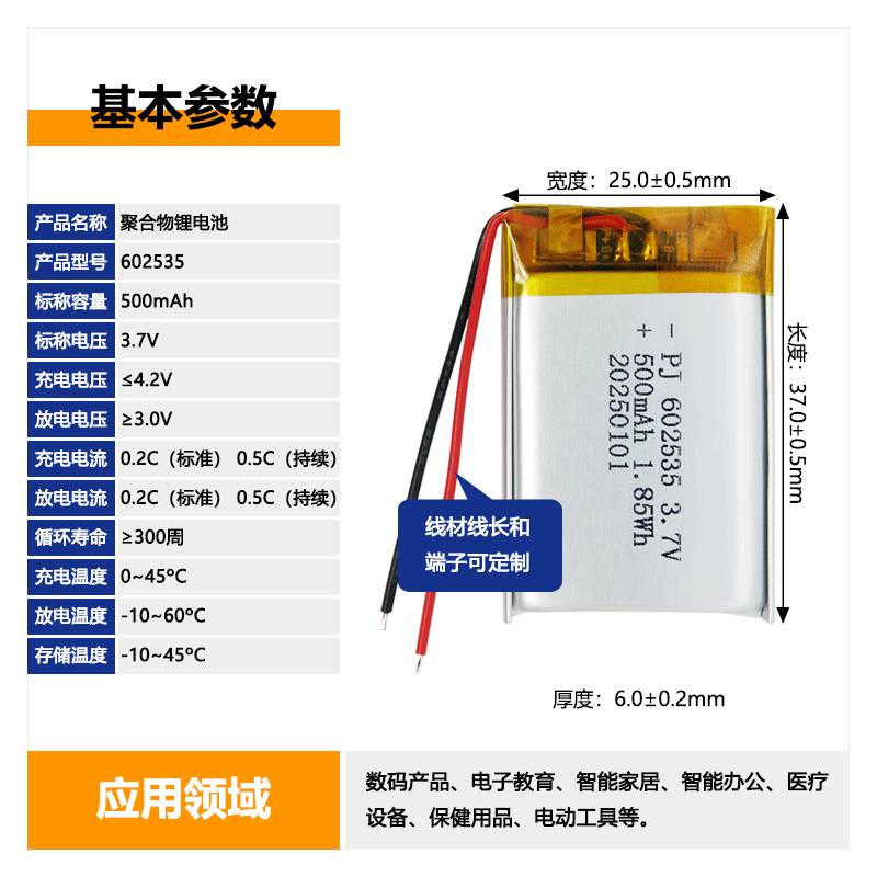 聚合物锂电池 型号:602535
