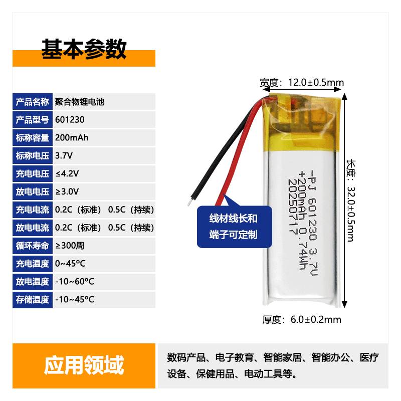 聚合物锂电池 型号:601230