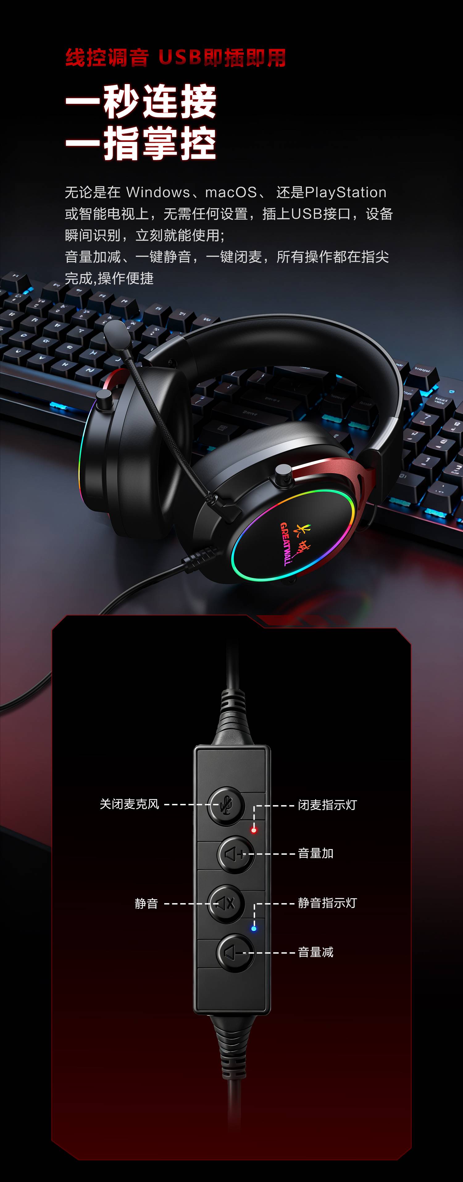 可插拨电竞头戴式麦克风耳机 GWH810