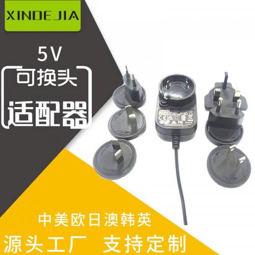 5V可换头电源适配器 配中/美/欧/日/澳/韩/英 1A/2A/3A/4A 充电器