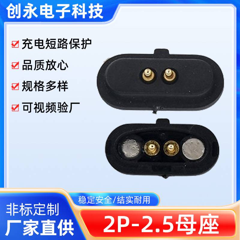 2pin 间距2.54PH连接器母座导电 充电座 防水磁吸式连接器智能