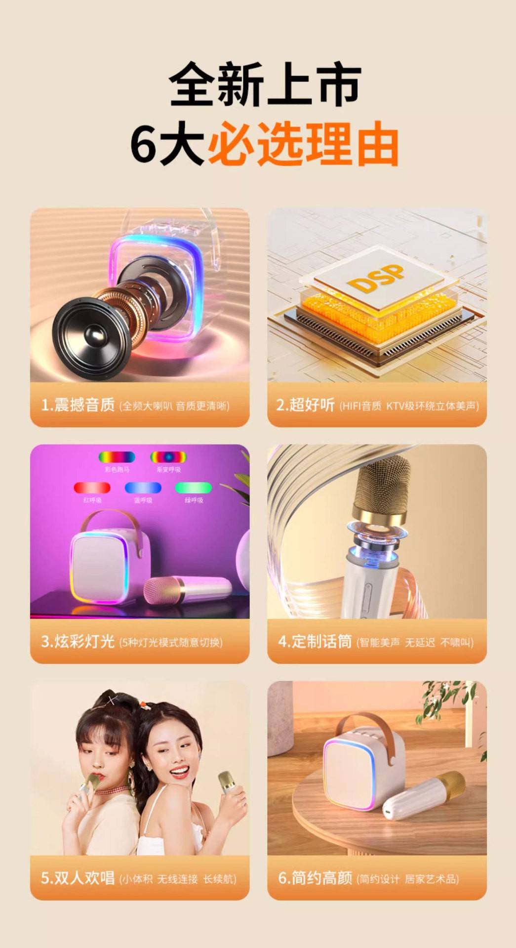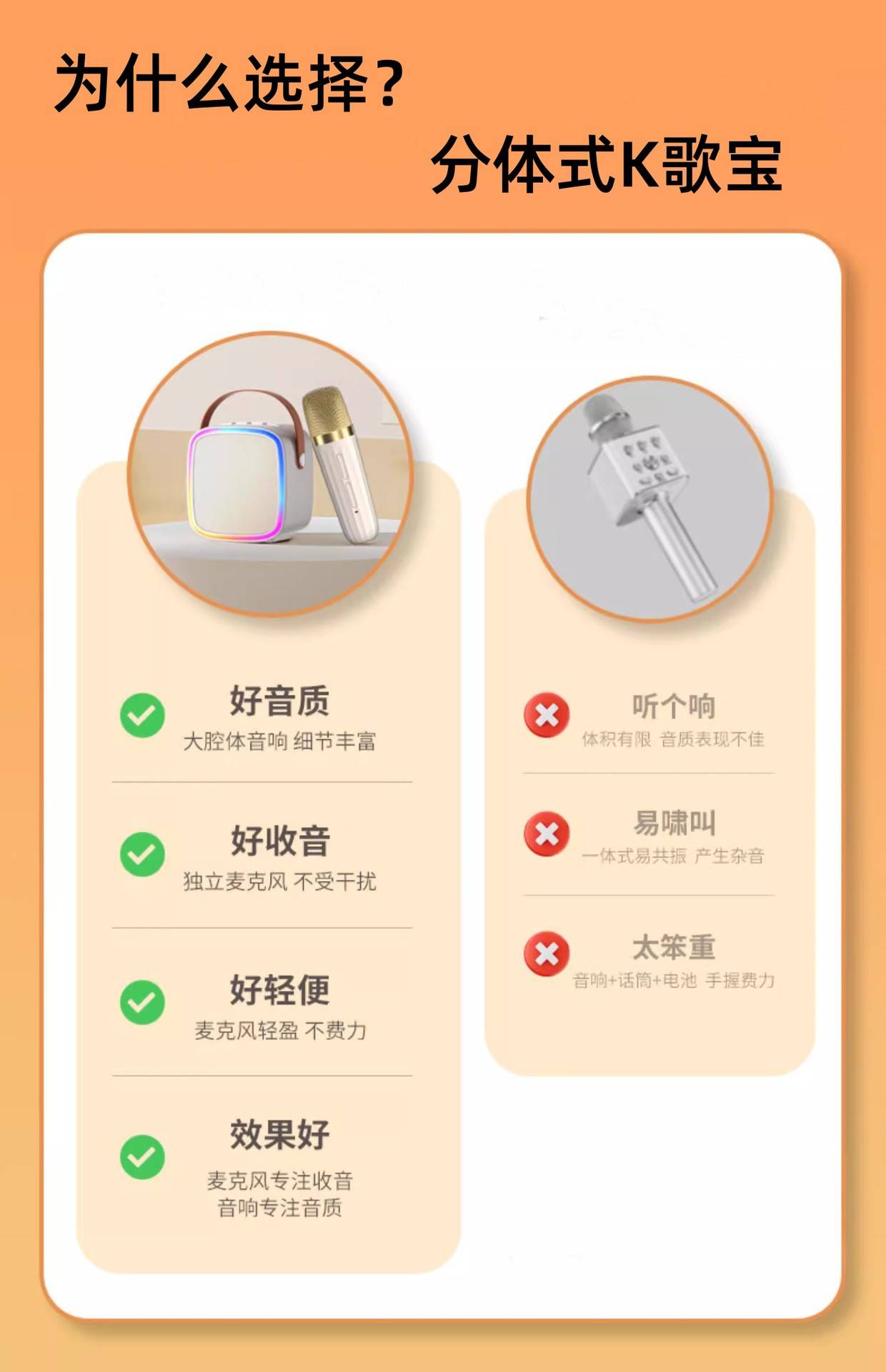 K1蓝牙音响K歌宝专业无线儿童音响手持便携式麦克风一体蓝牙音箱