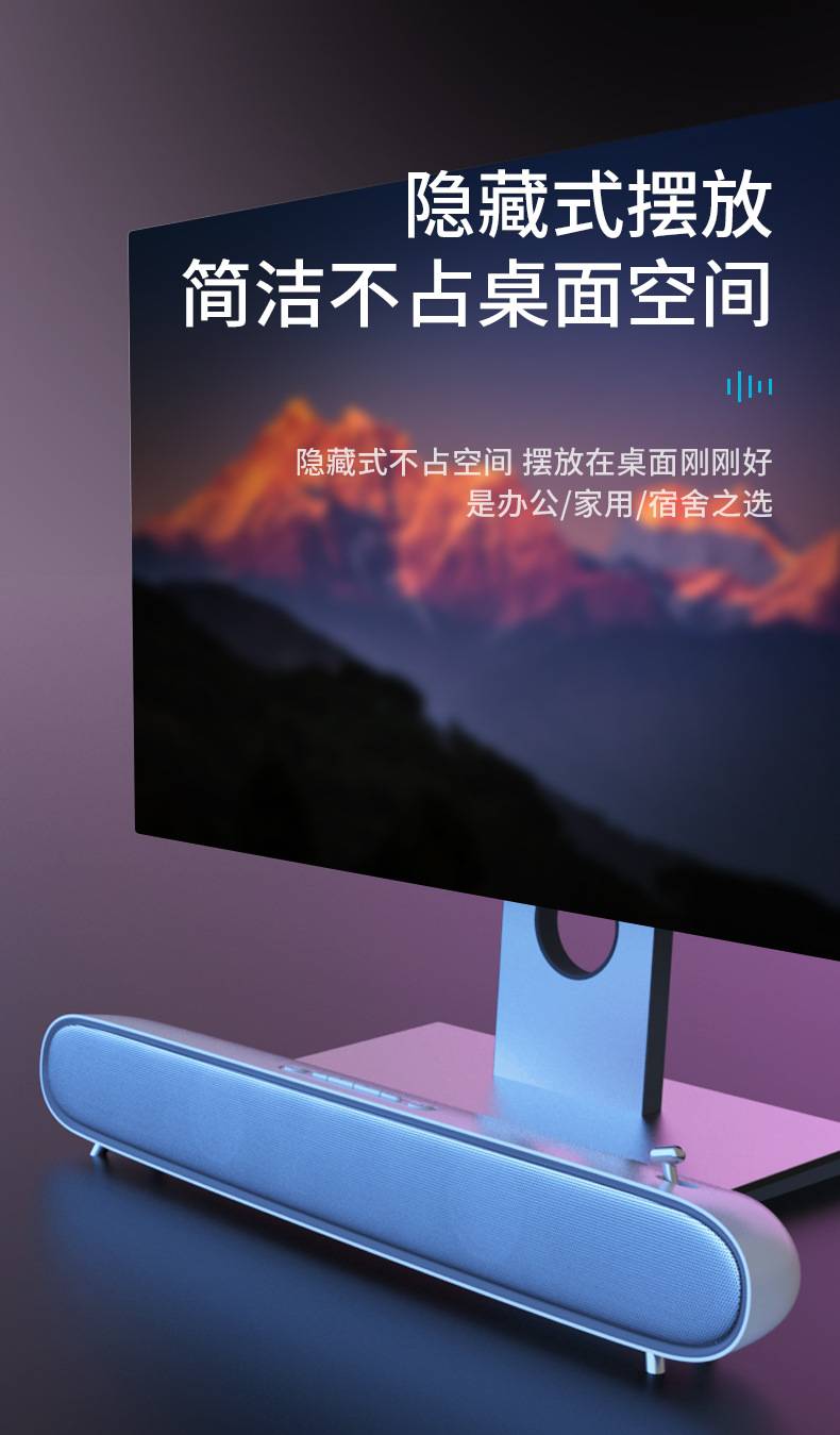 双喇叭电脑音响游戏笔记本台式桌面长条低音炮发光