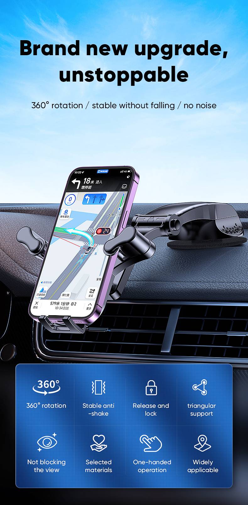 YC16 跨境爆款车载出风口手机支架汽车仪表台多功能重力可旋转手机支架