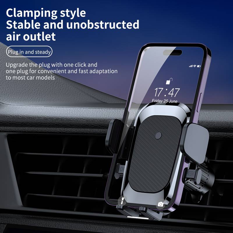 YC02 新款车载重力手机支架汽车出风口固定架车用导航手机架皮纹
