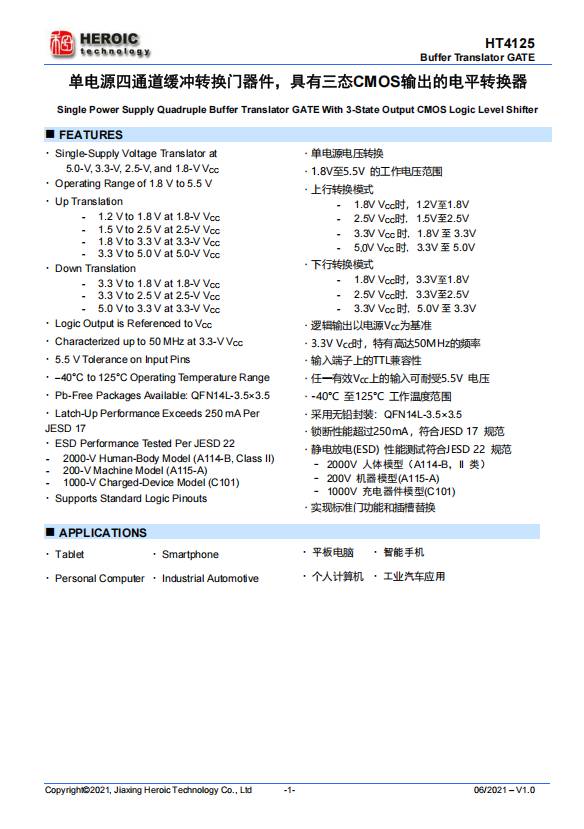 HT97180 125mW免输出耦合电容的立体声线路驱动器/耳机放大器