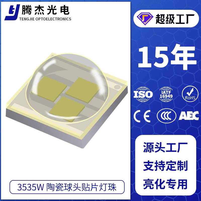 3535陶瓷透镜三芯串联9V高压大功率贴片灯珠