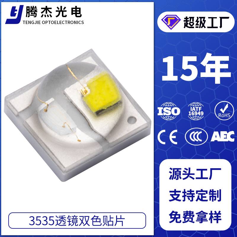 SMD3535陶瓷双色温贴片LED灯珠 白光蓝光双色合一2W大功率led光源