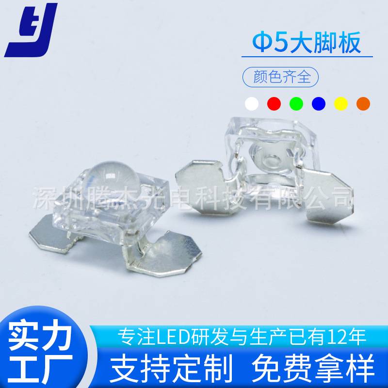 led食人鱼灯珠F5食人鱼高亮 LED大脚板灯珠0.5W 红光 鞋灯 仪表灯