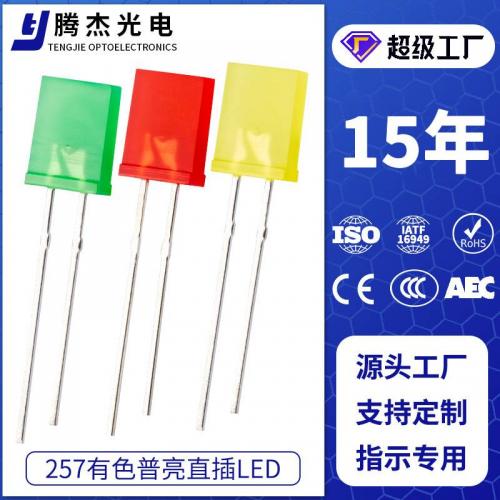 257有色普亮发光二极管 257方形有边短脚红绿黄光指示直插led灯