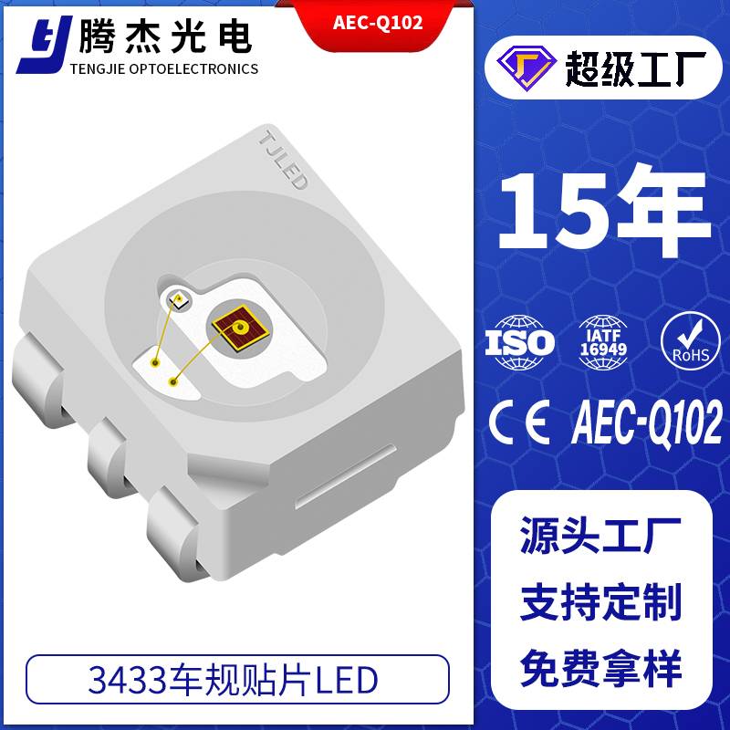 3433灯珠3433六脚红光0.5W车用LED过AEC-Q102车规认证 发光二极管