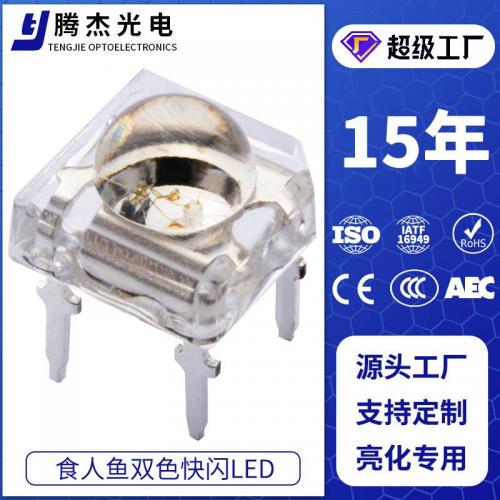 5mm超高亮双色快闪交替食人鱼led灯珠 f5圆头自动闪双色食人鱼led