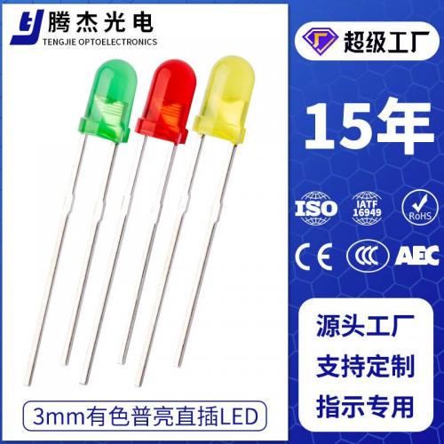 现货f3有色普亮发光二极管3mm圆头有边短脚红绿黄光指示直插led灯