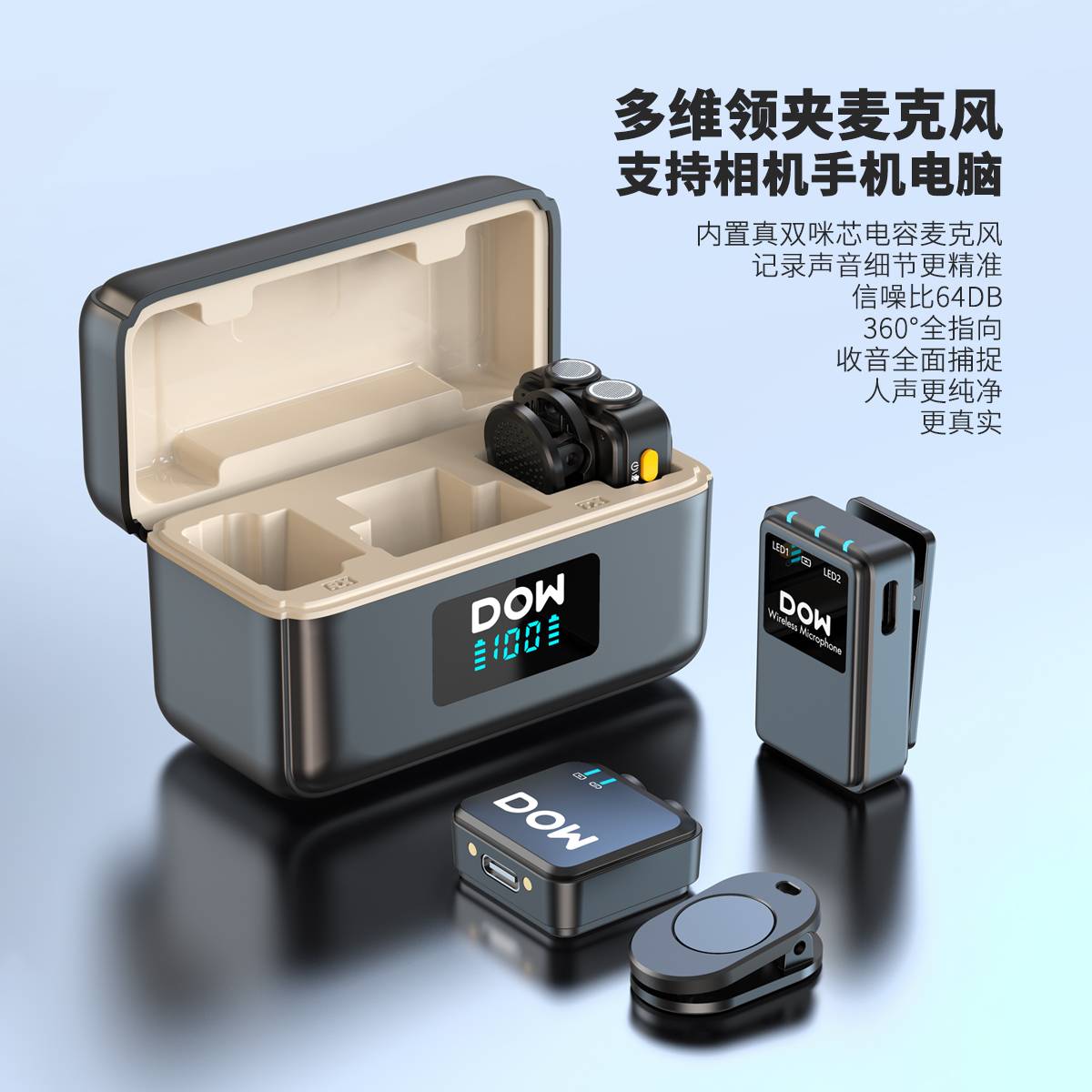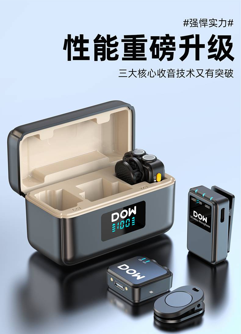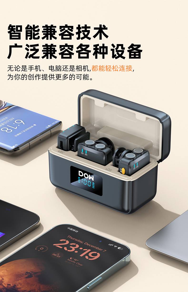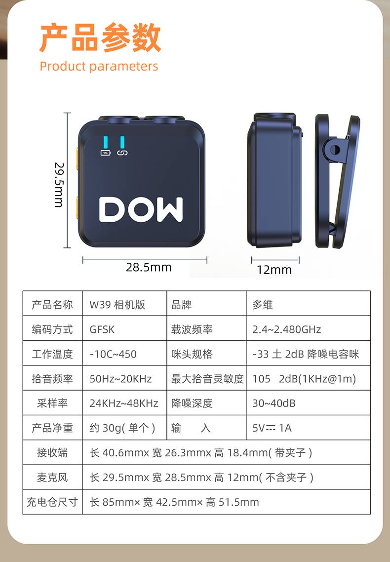 多维领夹麦W39一拖二带充电仓直播拍视频支持单反相机手机电脑收音录音2.4G无线混响单向音频免插拔