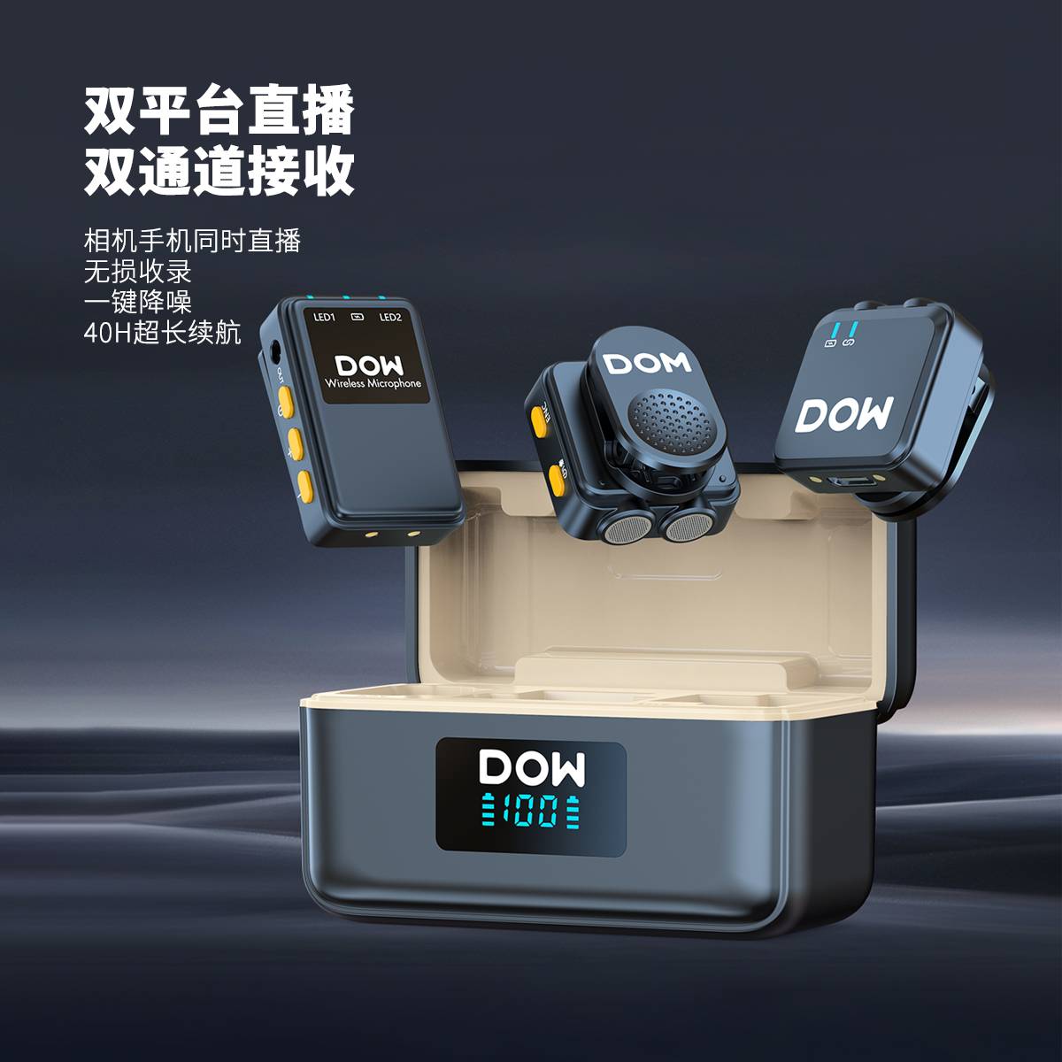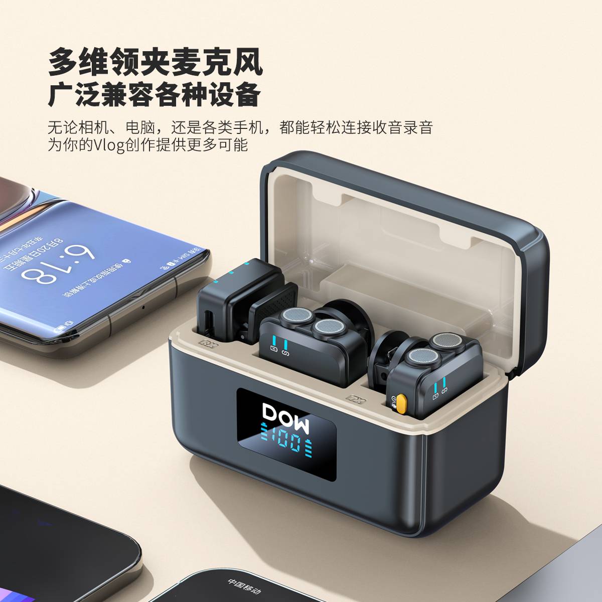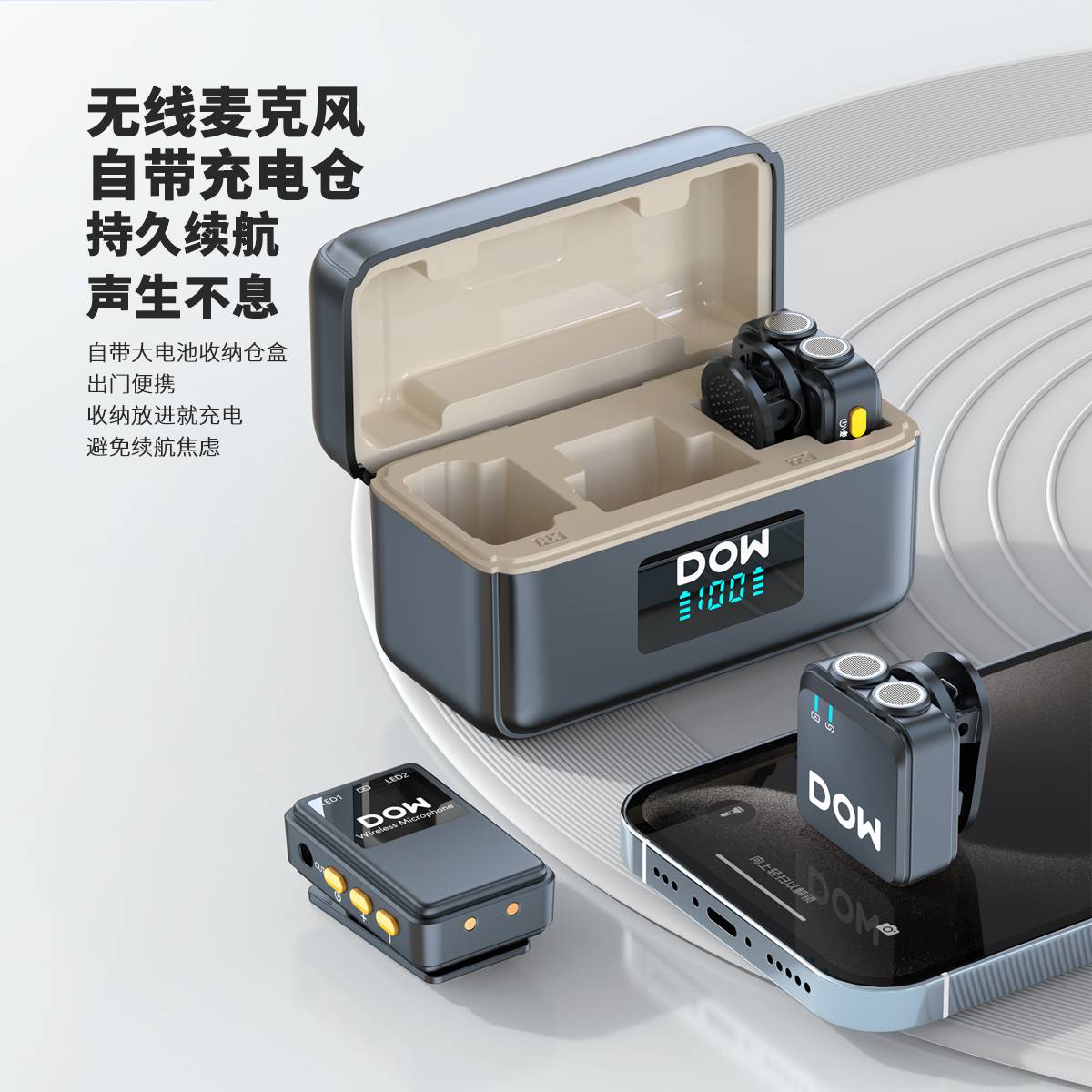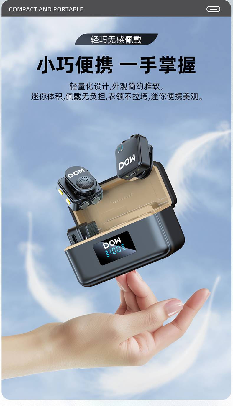 多维领夹麦W39一拖二带充电仓直播拍视频支持单反相机手机电脑收音录音2.4G无线混响单向音频免插拔