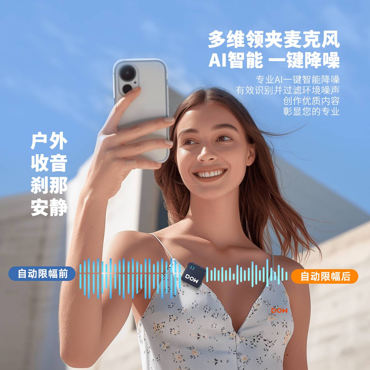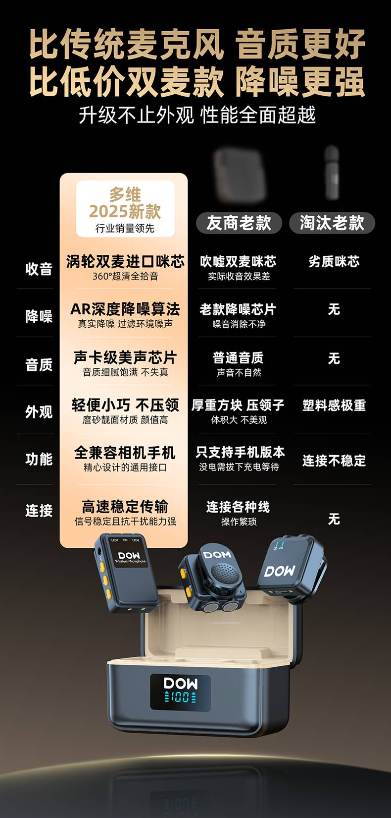 多维领夹麦W21一拖二带充电仓直播拍视频支持手机收音录音2.4G无线混响连麦双向音频