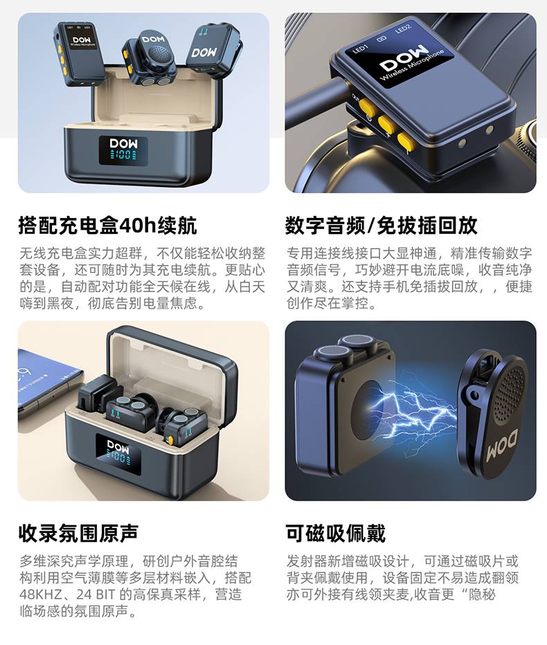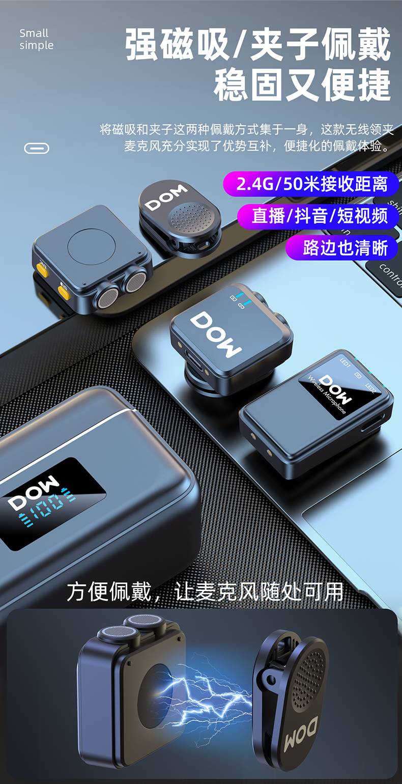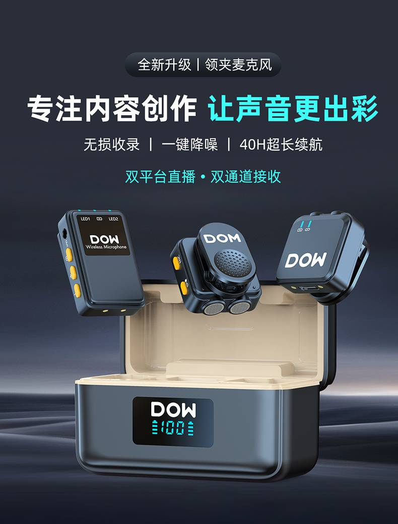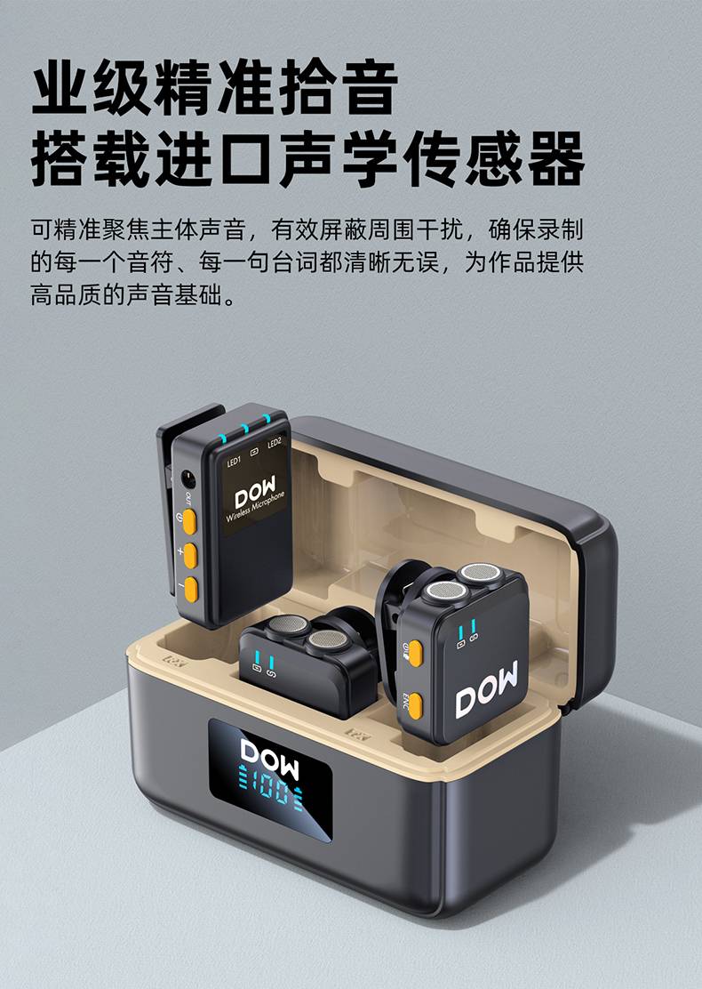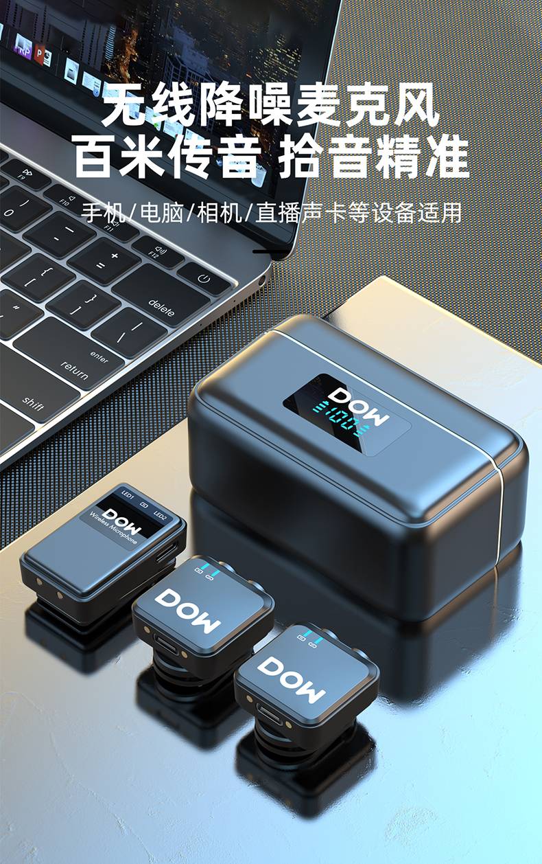 多维领夹麦W37一拖二带充电仓直播拍视频支持手机收音录音2.4G无线混响单向音频免插拔