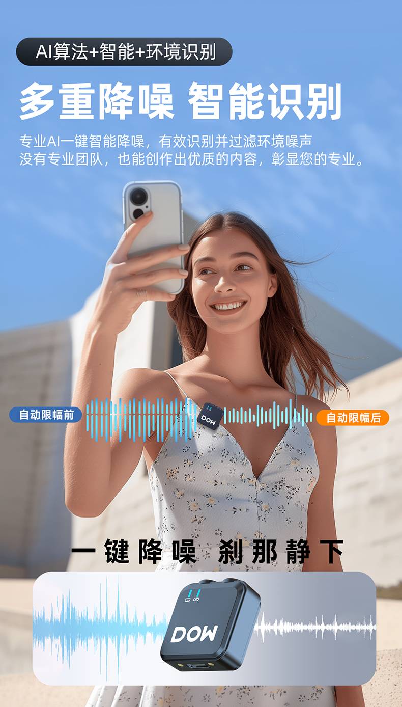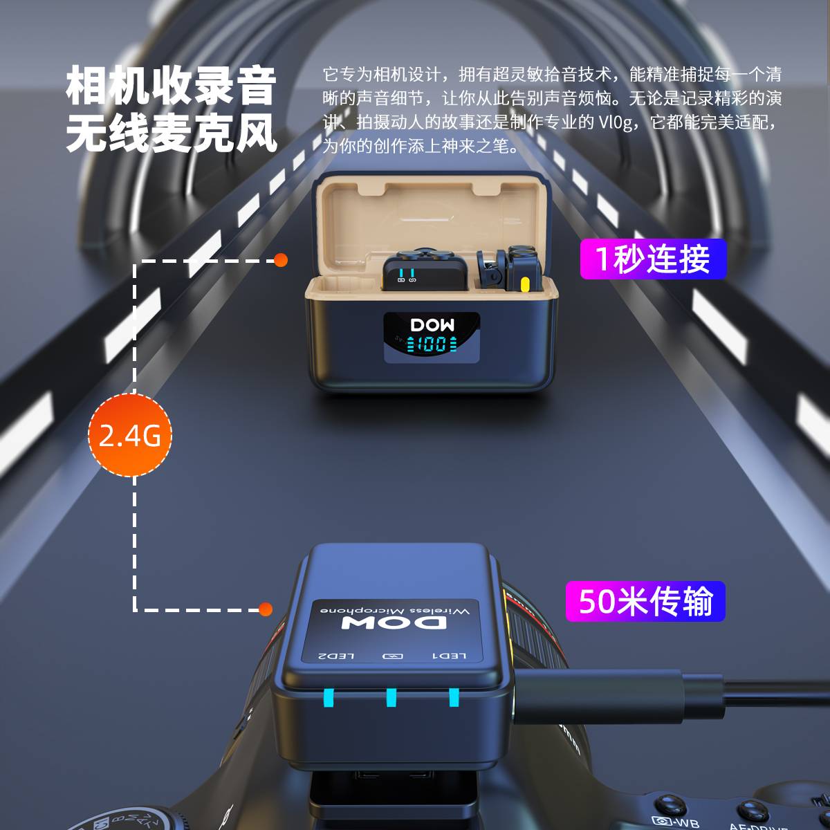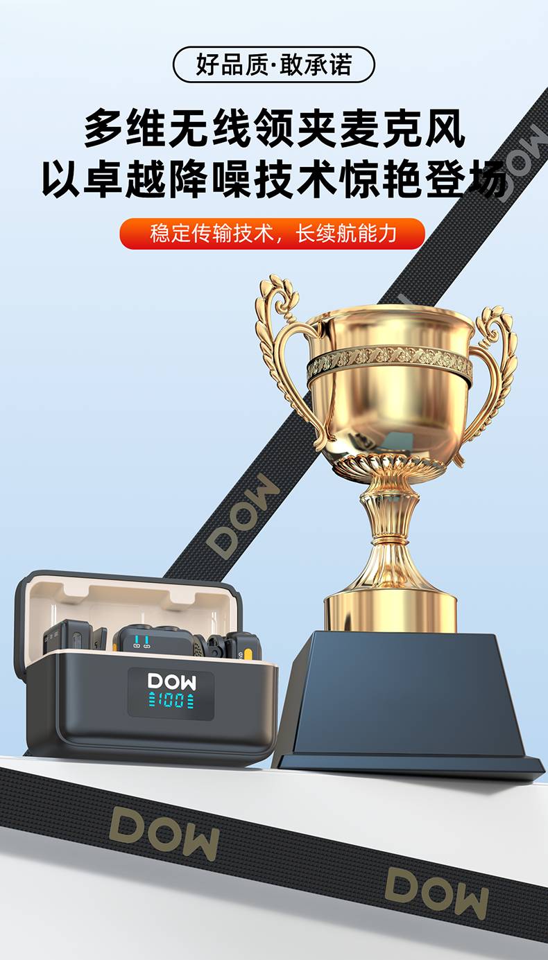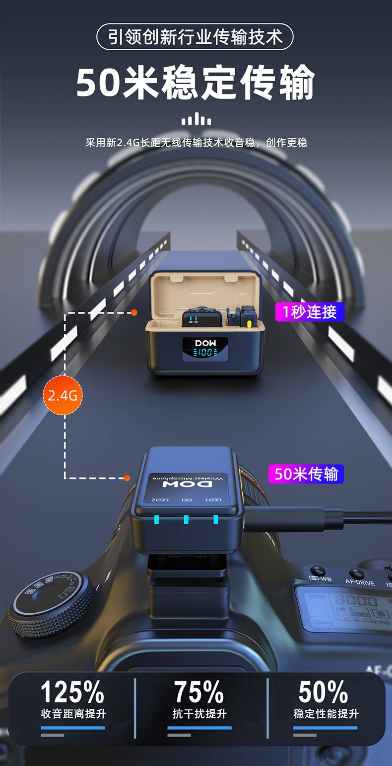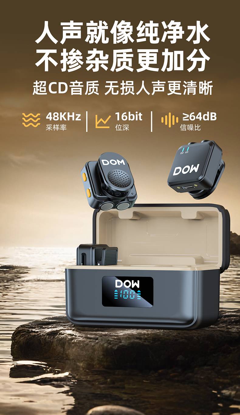 多维领夹麦W37一拖二带充电仓直播拍视频支持手机收音录音2.4G无线混响单向音频免插拔