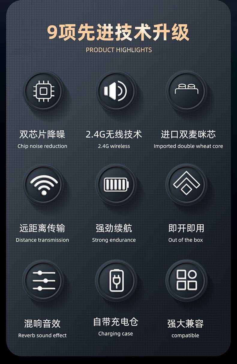 多维无线声卡W52支持各类手机直播户外娱乐手持声卡双麦双耳机2.4G无线蓝牙伴奏连麦PK双向音频