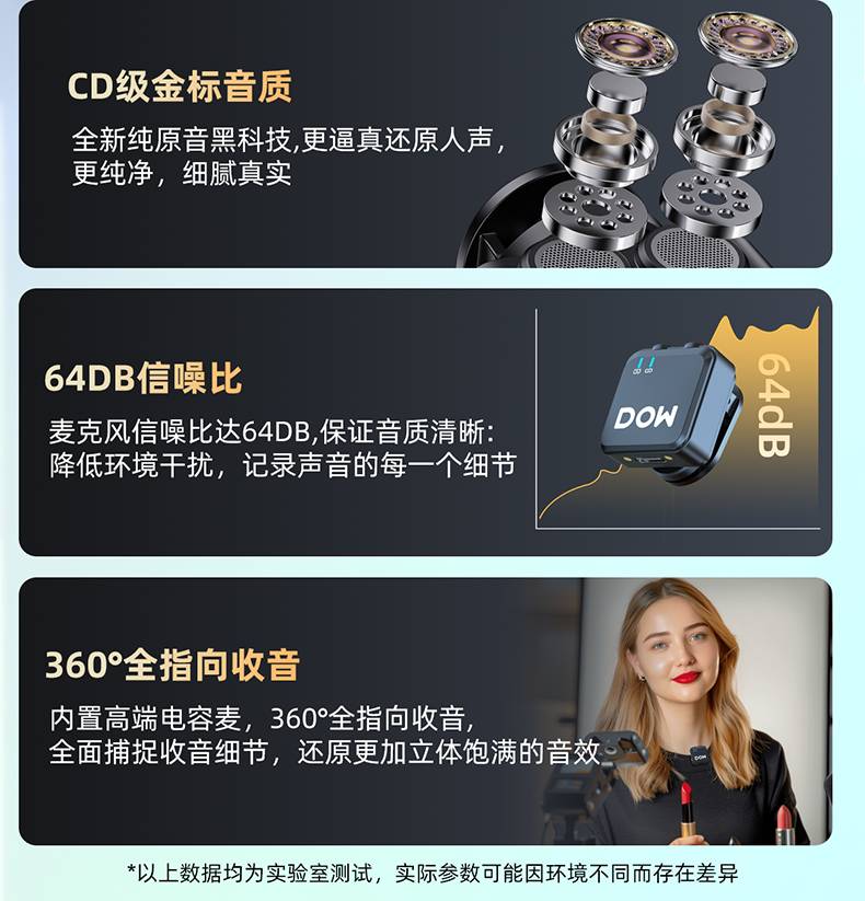 多维领夹麦W16一拖一直播拍视频支持单反相机手机电脑收音录音2.4G无线蓝牙伴奏连麦PK双向音频