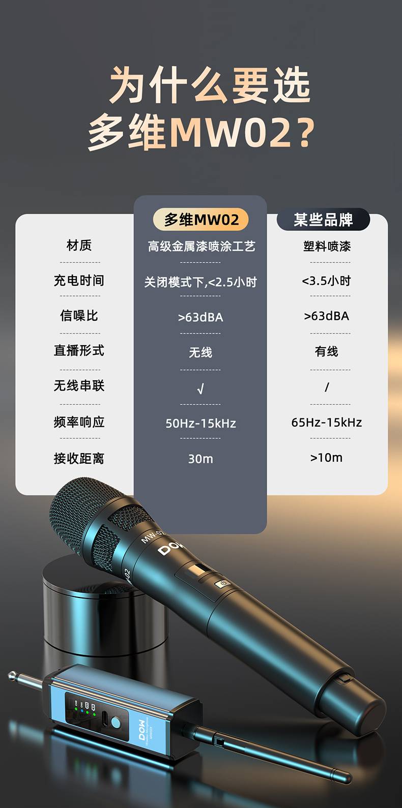 多维无线麦克风MW02演唱级专业话筒一拖二声音干净高原声还原度