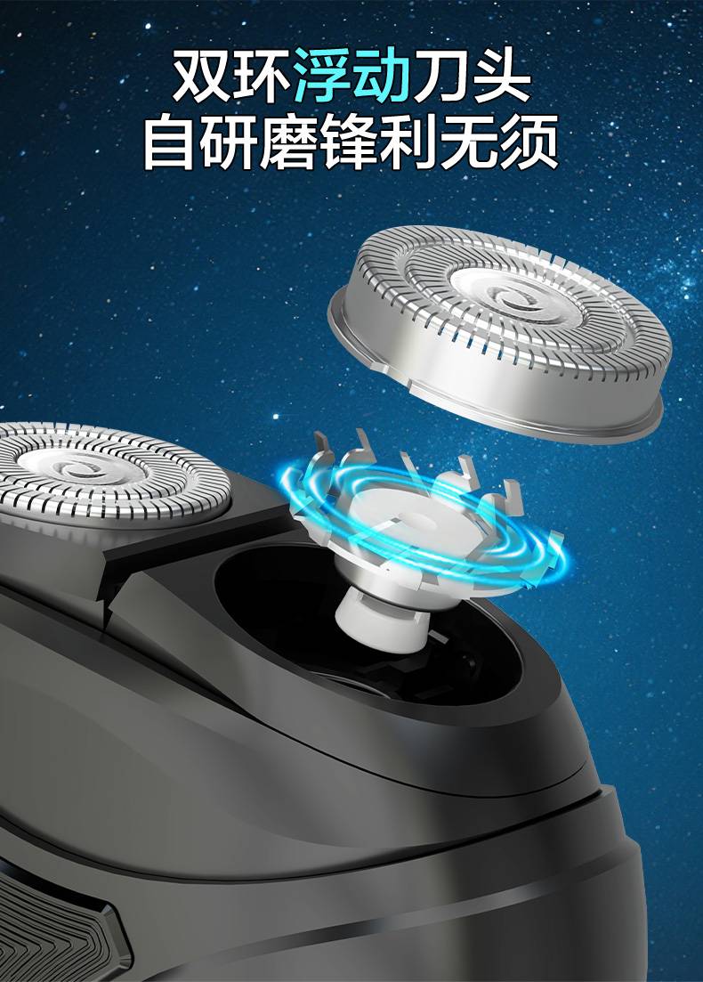 往复式电动剃须刀双刀头男士剃须刀家用刮胡刀液晶数显迷你剃须刀