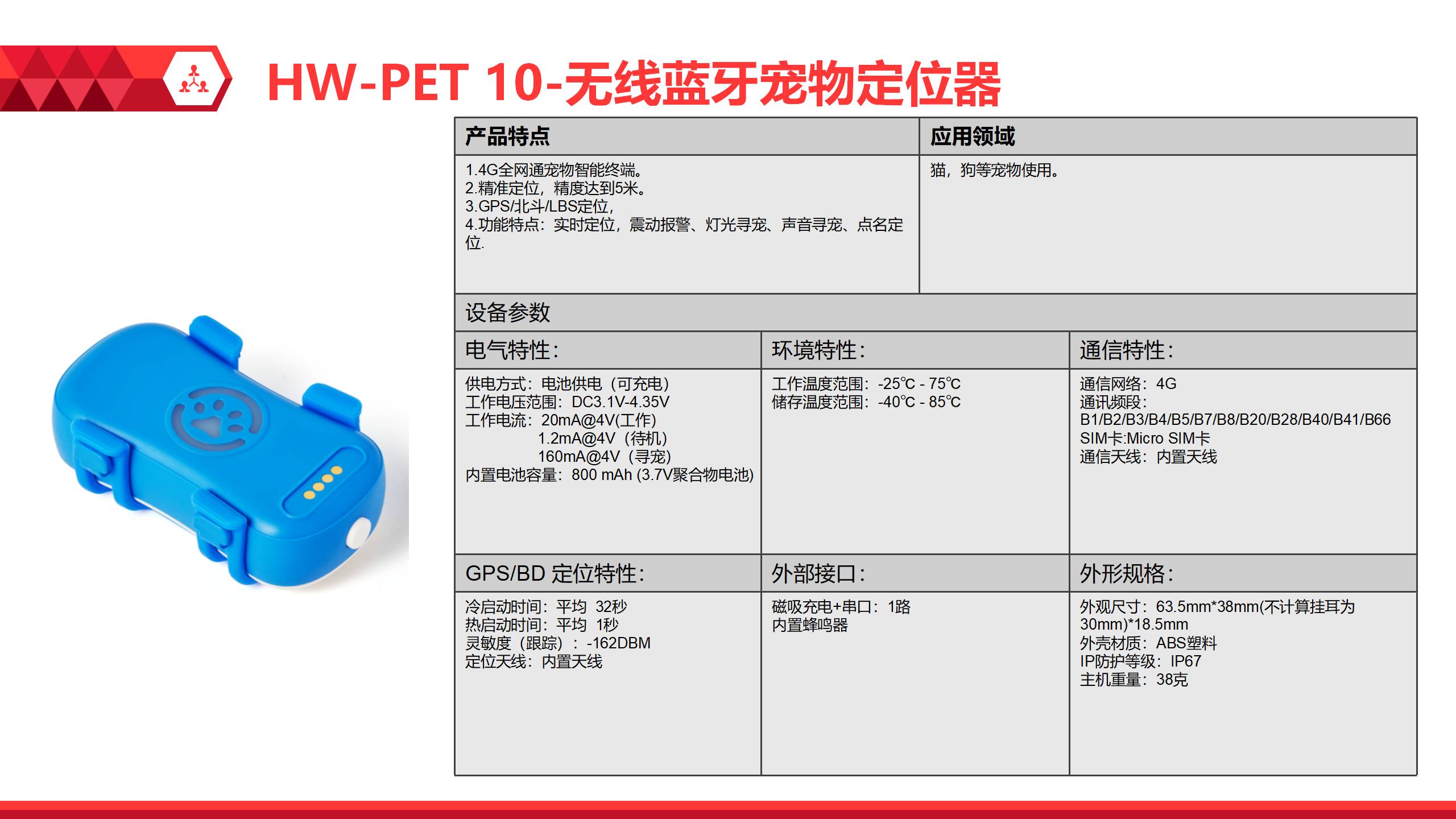 HW-PET 10-无线蓝牙宠物定位器