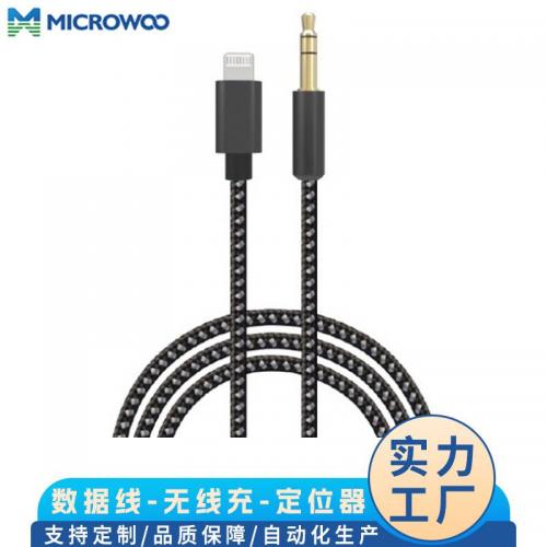 Mfi 认证lightning to aux 数据线尼龙编织+金属
