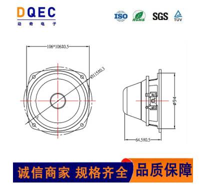 动奇扬声器98*52.5H mm蓝牙音响定制木箱HiFi专用高保真中低频4Ω15W喇叭